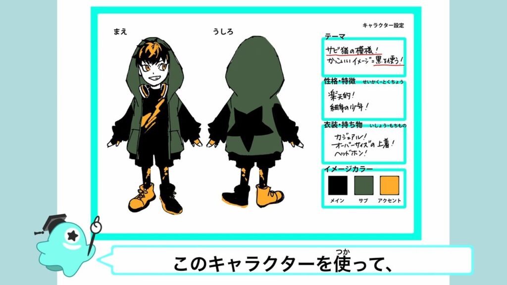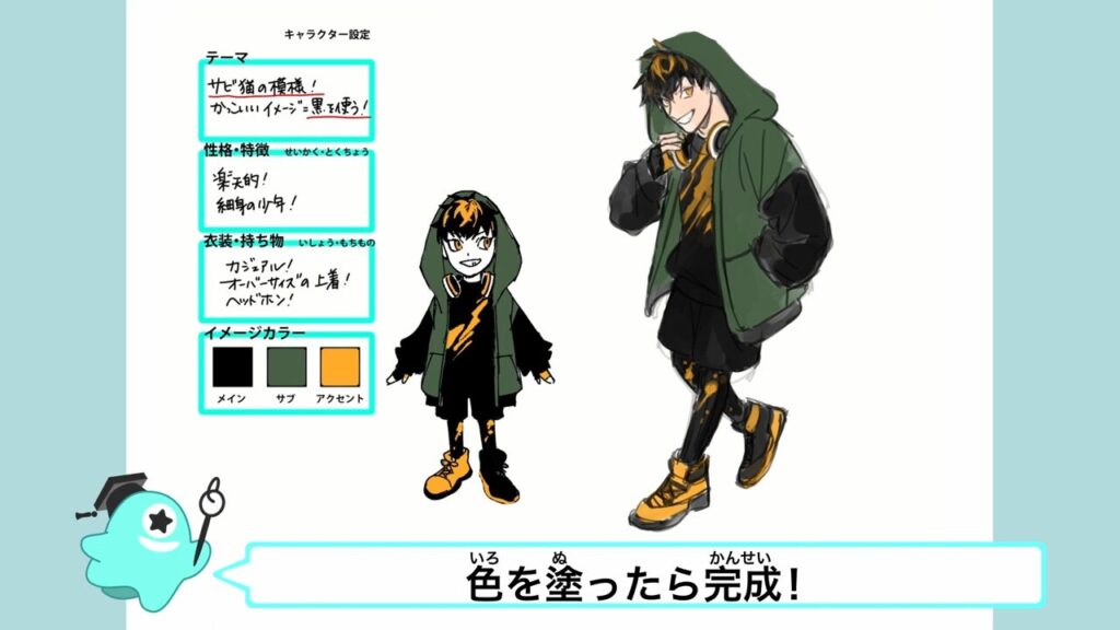 このように、そのキャラクターの性格や個性にあわせて考えながら進めていきましょう。