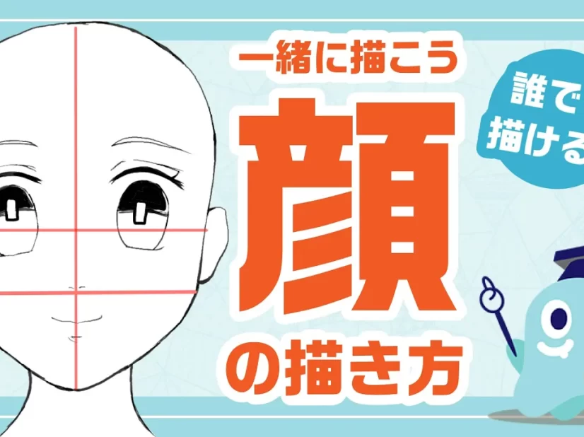 顔のイラストの基本となるアタリの描き方から学べるよ。