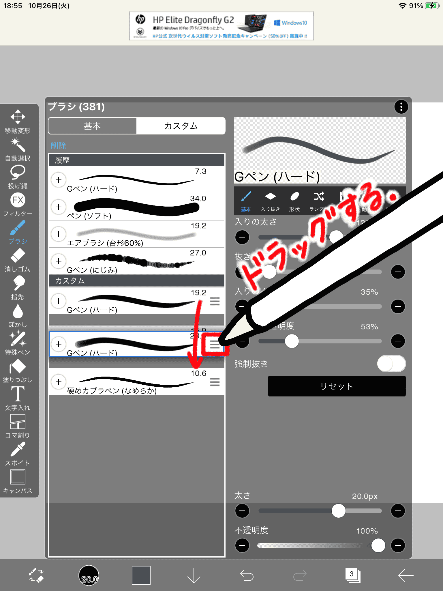 スケッチブックの画面の上にあるツールバーからパースガイドをかくにんしてみてね!