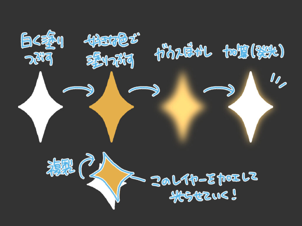 どのような形の光エフェクトでも、以下の手順を使えば綺麗に発光させることができます。