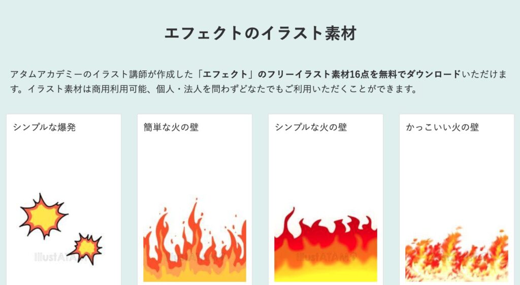 アタムアカデミーでは、炎・水・雷などのエフェクトの描き方を学ぶことができます。
