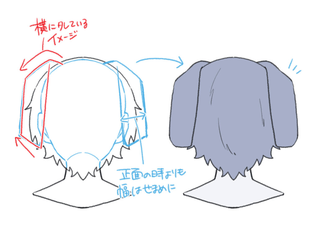 また、接地面を直線ではなく、頭部の丸みに合わせた曲線(カーブ)で描くことで、生えている感覚をリアルに再現できます。