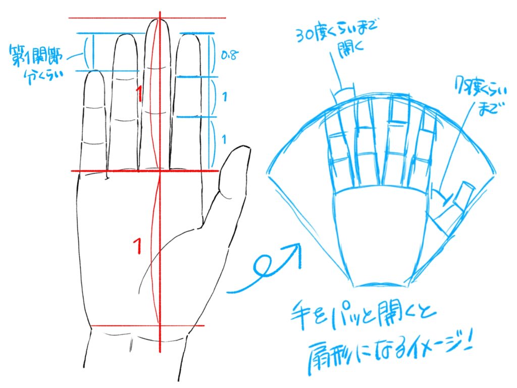 手を描き始める前に、まずは違和感のない手を描くための基本ルール(比率と構造)を押さえましょう。