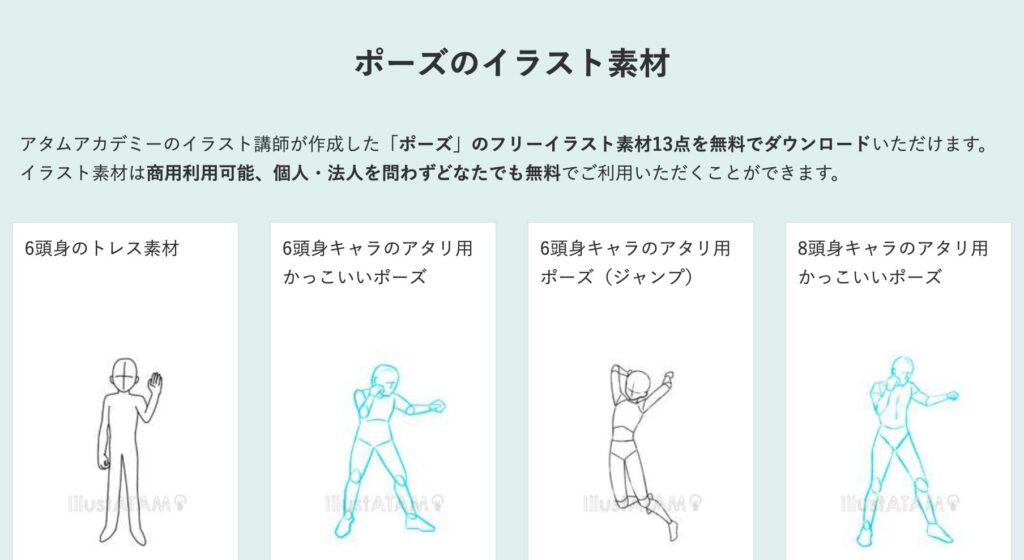 アタムアカデミーでは、人物のポーズの描き方を学ぶことができます。