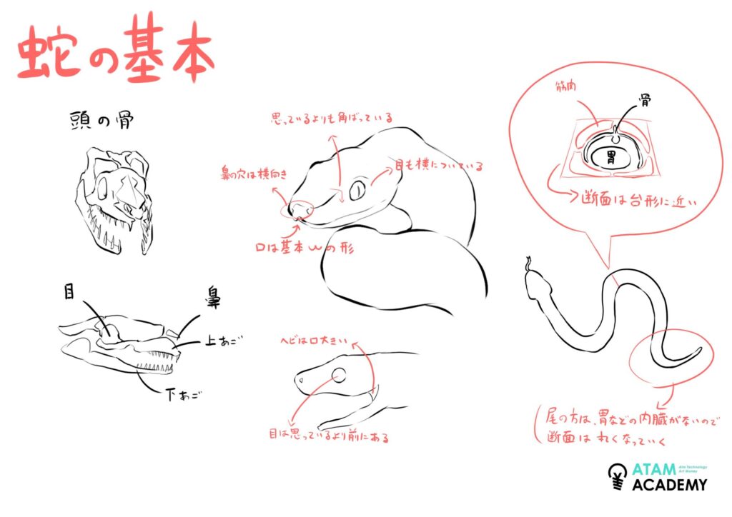 アタムアカデミーでは、ヘビの描き方を学ぶことができます。