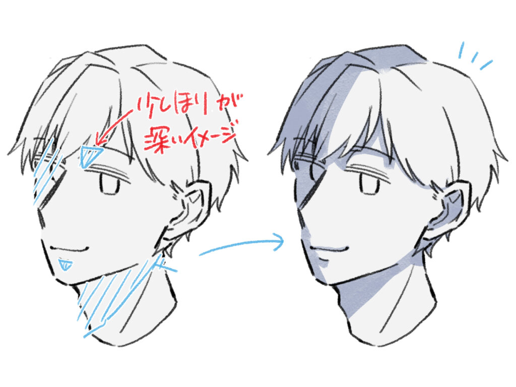 彫りの深さを強調することで、イケメンキャラのかっこよさを演出できます。