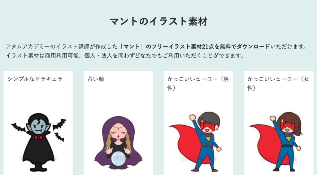 アタムアカデミーでは、マントの描き方を学べます。