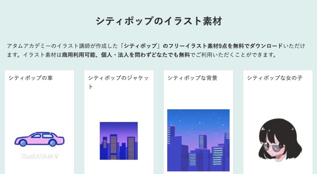 アタムアカデミーでは、シティポップ風イラストの描き方を学ぶことができます。