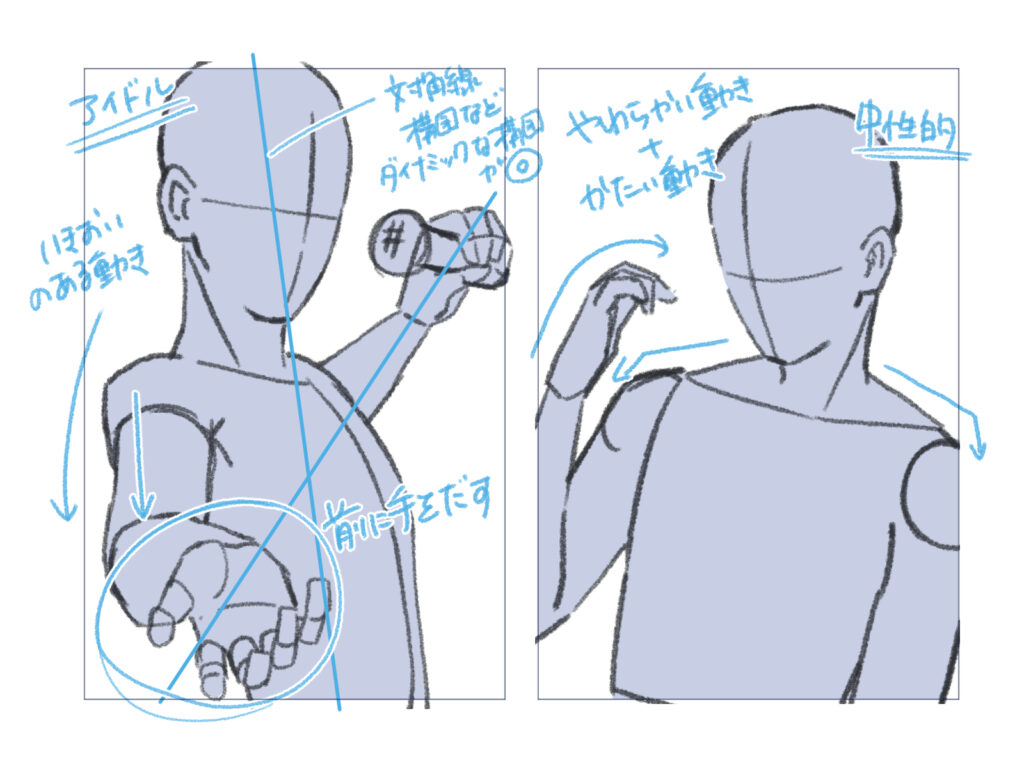 アイドル系のバストアップでは、メリハリを持たせつつダイナミックなポーズが魅力的です。例えば手を前方に大きく伸ばすなど、印象的な動きを加えることで視線を引きつけます。