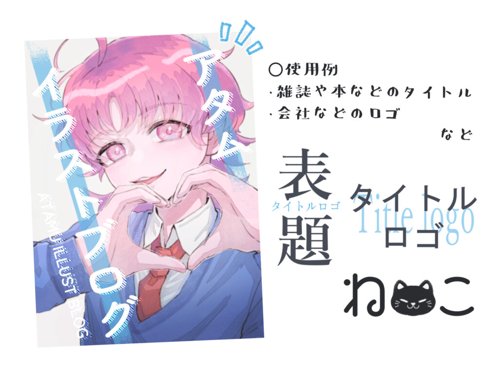 タイトルロゴとは、雑誌や書籍、ゲーム、Webサイトなど、様々な作品の「顔」となる大切な要素です。作品のタイトルを読者の印象に残るようにデザインし、その世界観や雰囲気を一瞬で伝える重要な役割を担っています。