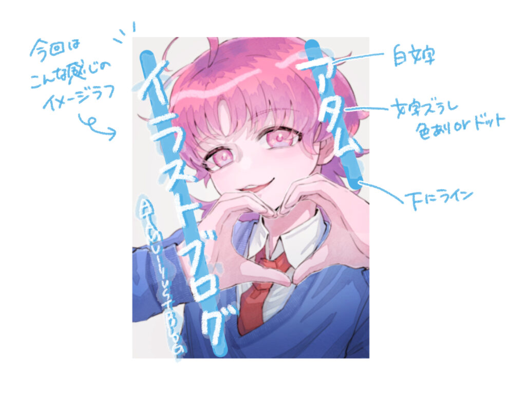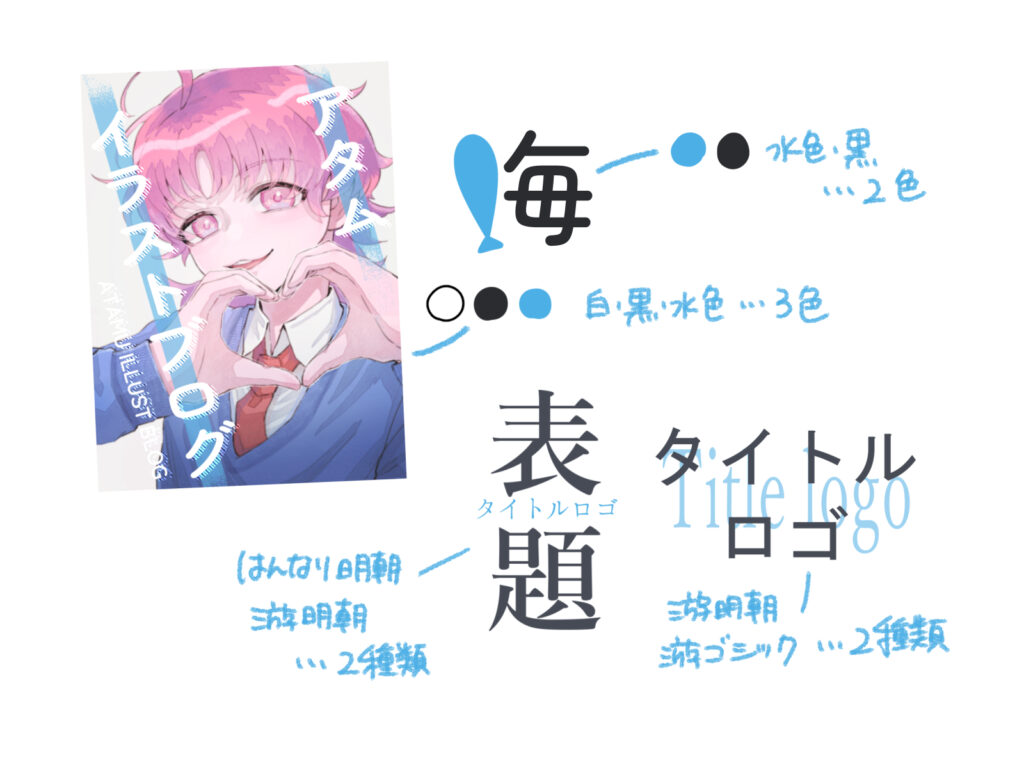 用意したイラストに合わせ、タイトルロゴのデザインの方向性を決めます。今回は可愛らしい雰囲気のイラストを用意したので、「可愛い」をテーマにしたデザインを考えていきます。