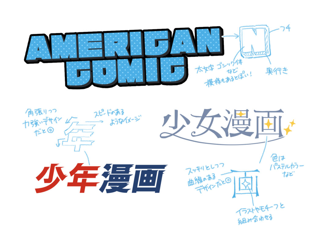 漫画のタイトルロゴは、作品の第一印象を決定づけます。ターゲットとする読者層やジャンルの雰囲気に合わせてデザインしましょう。
