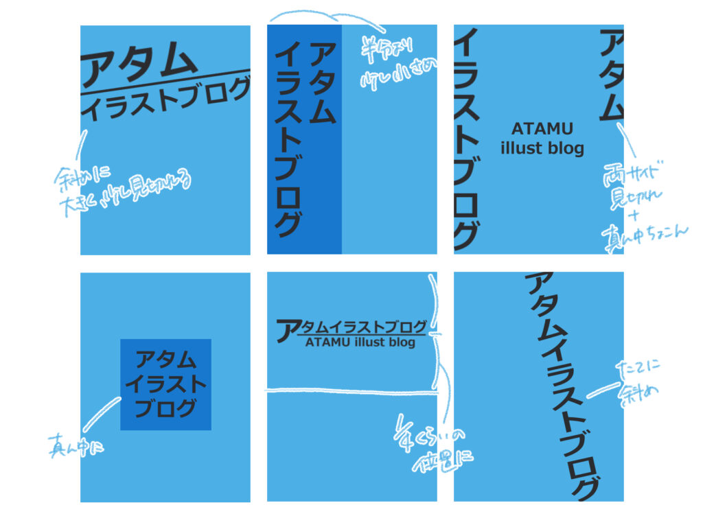 複数の案の中から、最もイメージに近いデザインを選びラフスケッチを描いていきます。今回は中央の案を採用しました。フォントやデザインを少し変えるだけでも、多くのバリエーションを作れます。