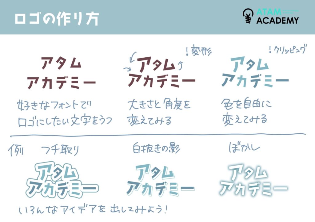 アタムアカデミーでは、タイトルロゴの作り方を学ぶことができます。