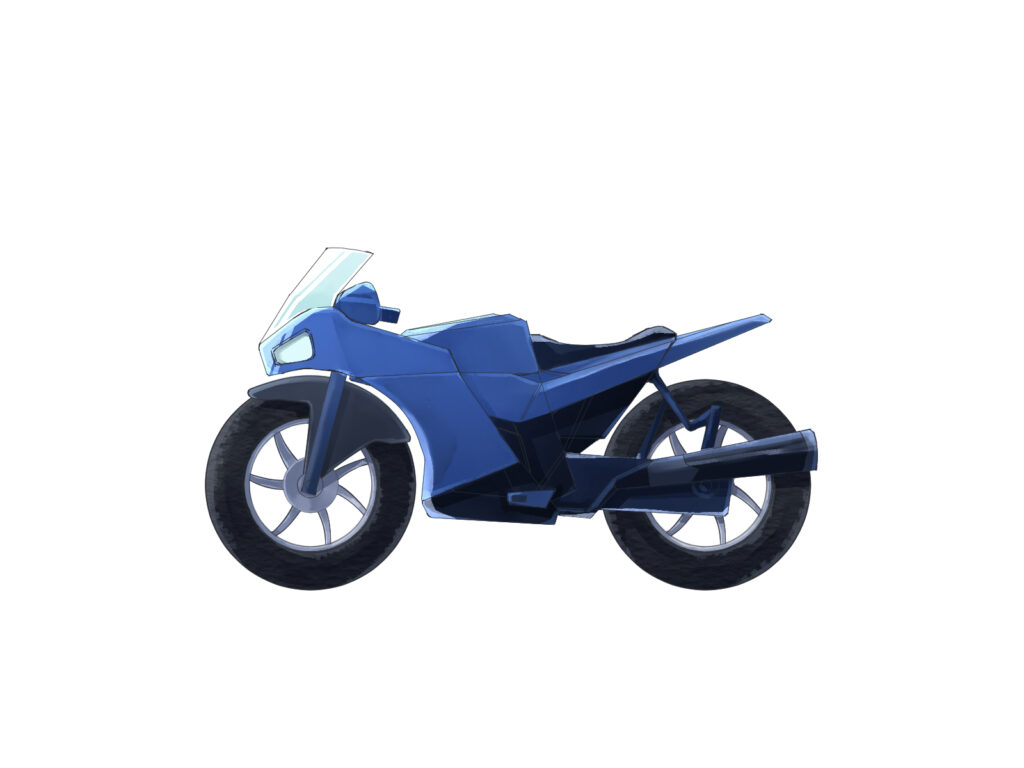 線画が完成したら、バイクにベースとなる色を塗っていきます。今回は青系の色で塗っていきます。
