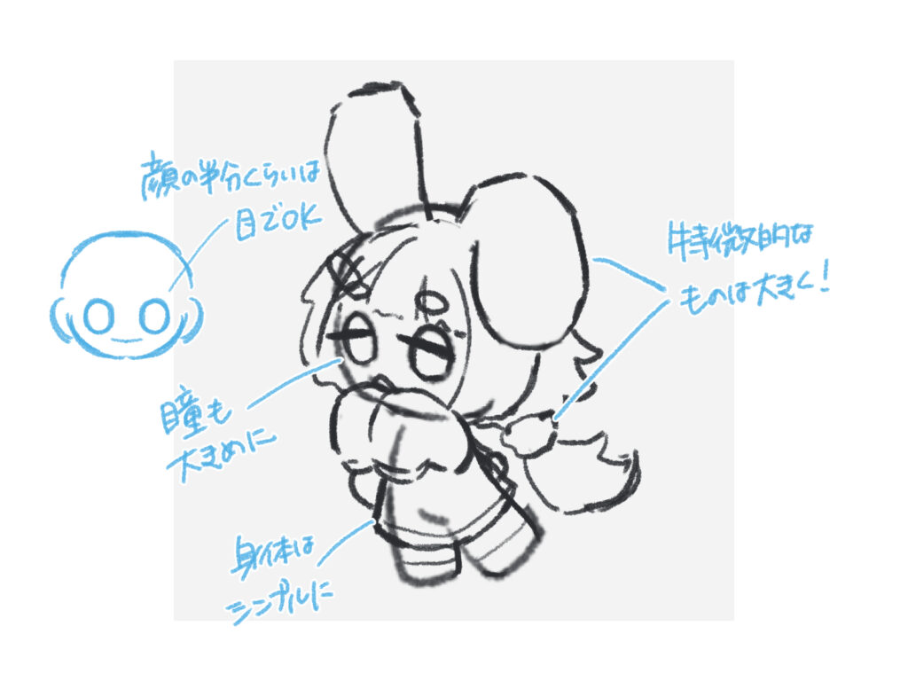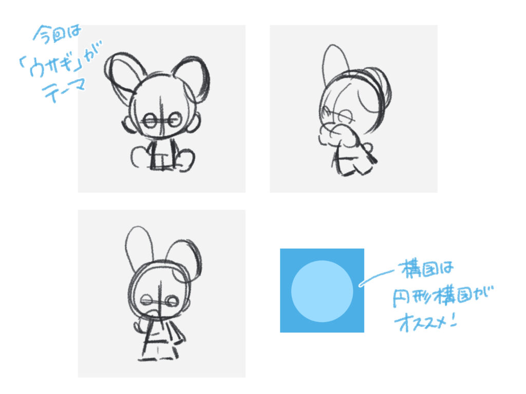 今回は「ウサギ」をテーマにキャラクターをデザインし、実際に2頭身イラストを描く手順を解説します。