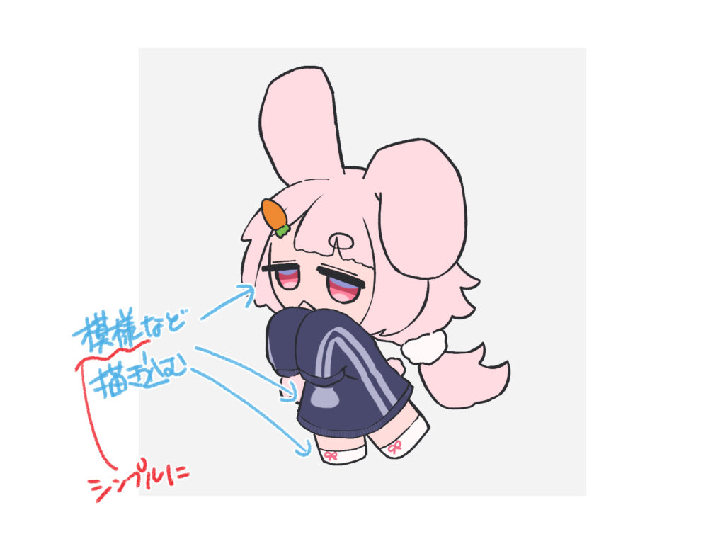 キャラクターのチャームポイントとなる部分(今回のウサギなら耳)は大きく、それ以外はシンプルに描くのが、可愛く見せるコツです。