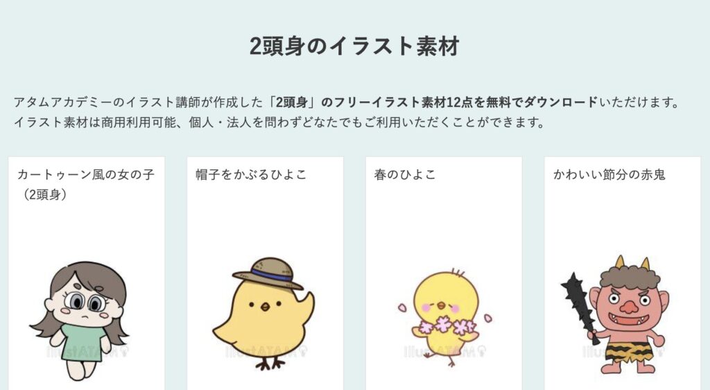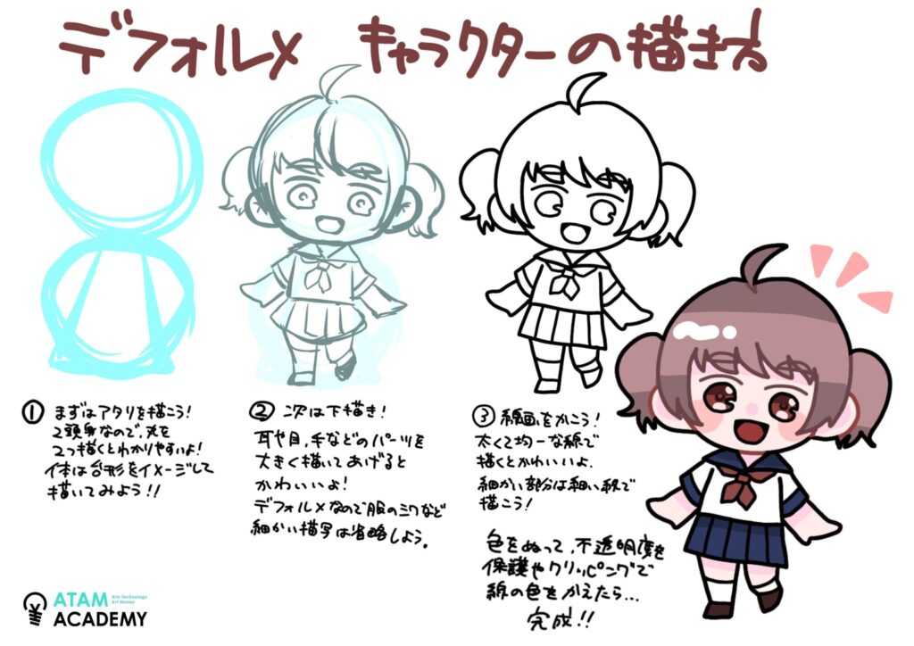 アタムアカデミーでは、2頭身キャラクターの描き方を学ぶことができます。