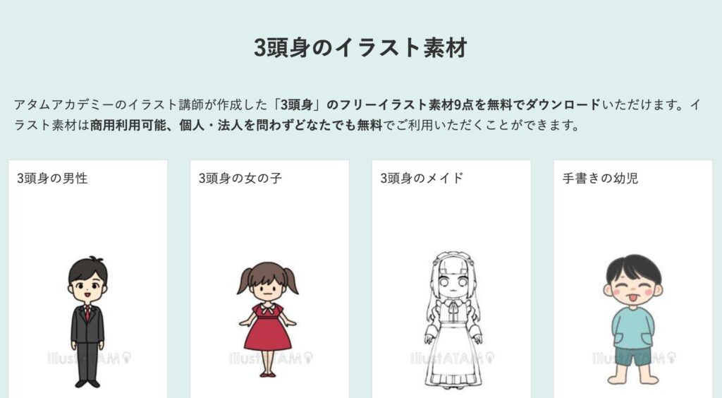 アタムアカデミーでは、3頭身キャラクターの描き方を学ぶことができます。