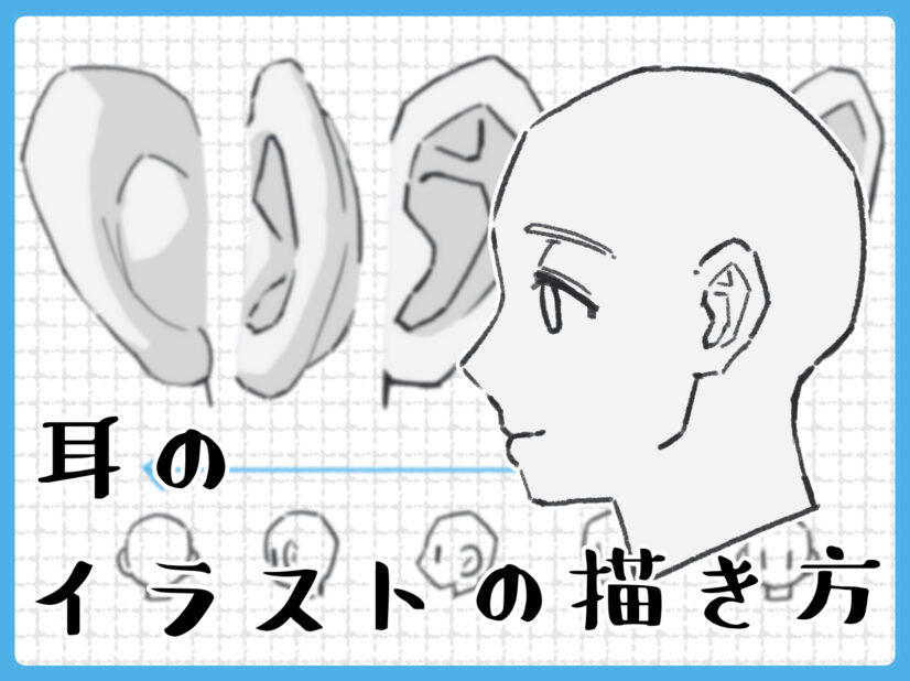 それでは、実際に耳を描いていきましょう。ここでは、形が一番分かりやすい「横顔」を例に解説します。