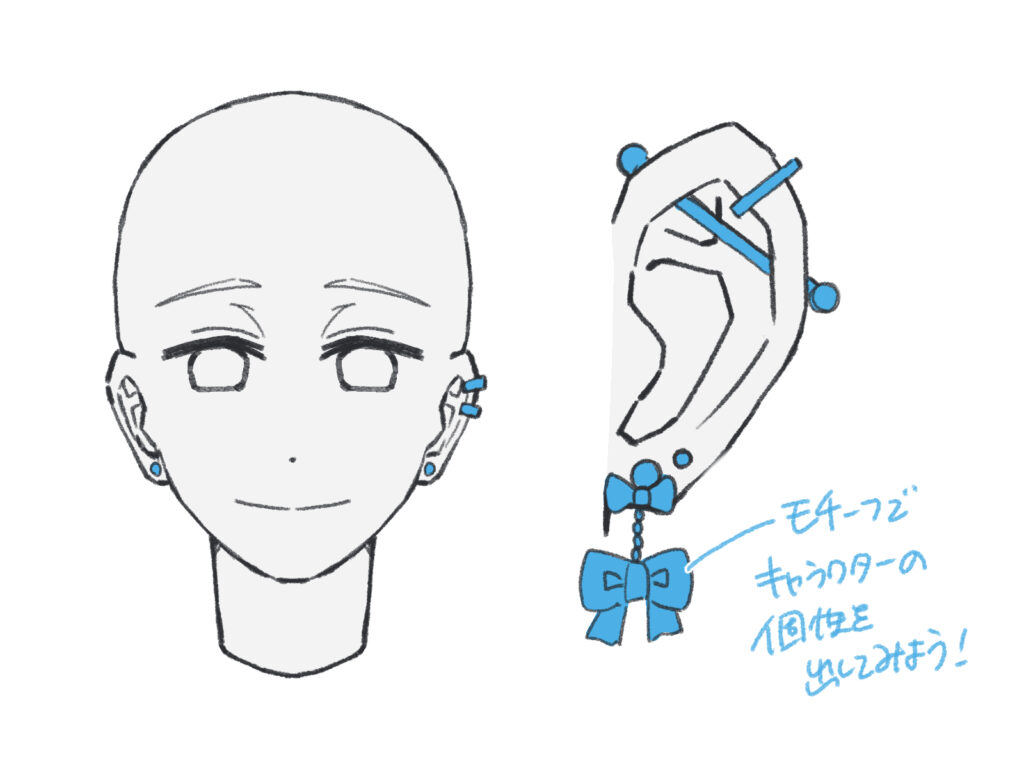 耳の形やアクセサリーを工夫することで、キャラクターの個性を豊かに表現できます。