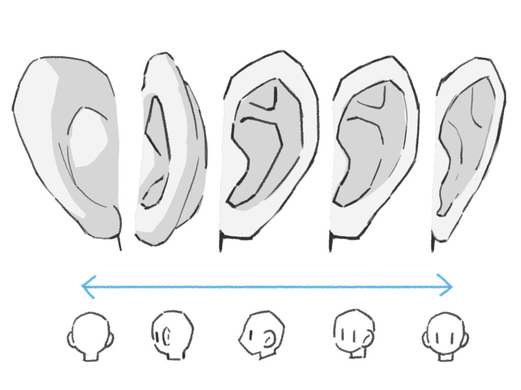 基本が分かったら、色々な角度から見た耳に挑戦してみましょう。