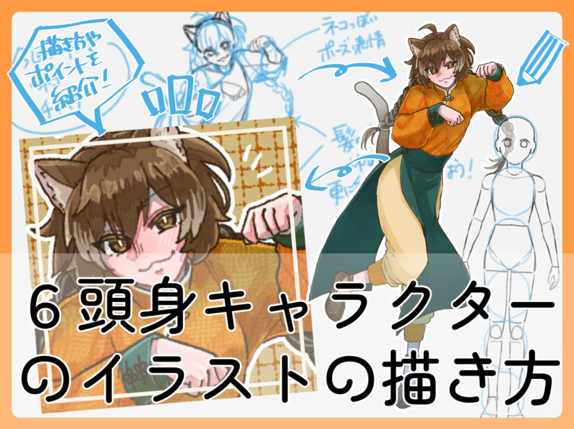 ここからは、実際に6頭身キャラクターを描く手順を解説します。今回は「ネコ・チャイナ」をテーマにしたキャラクターを例に進めます。
