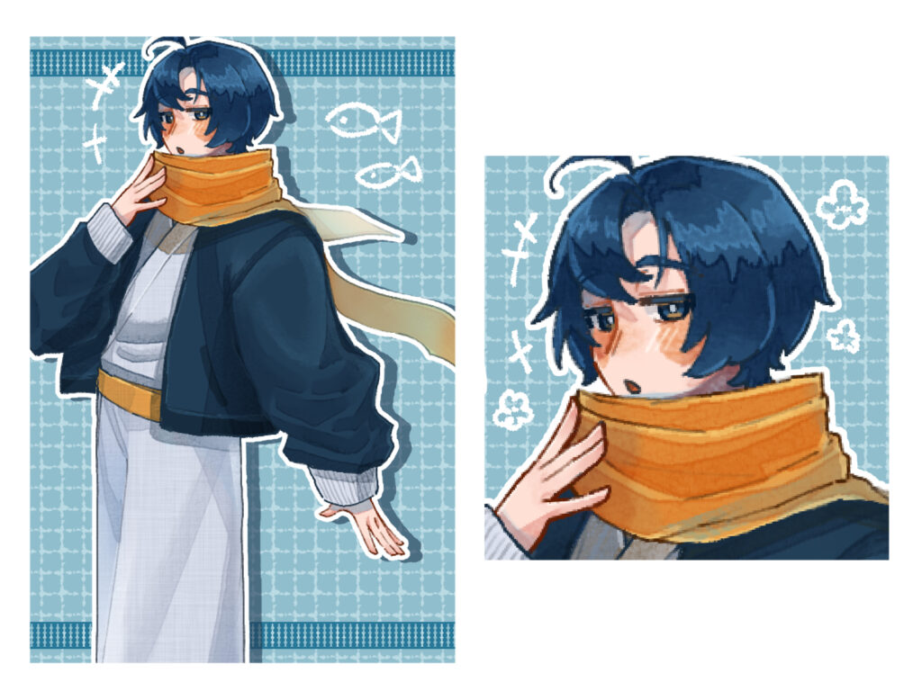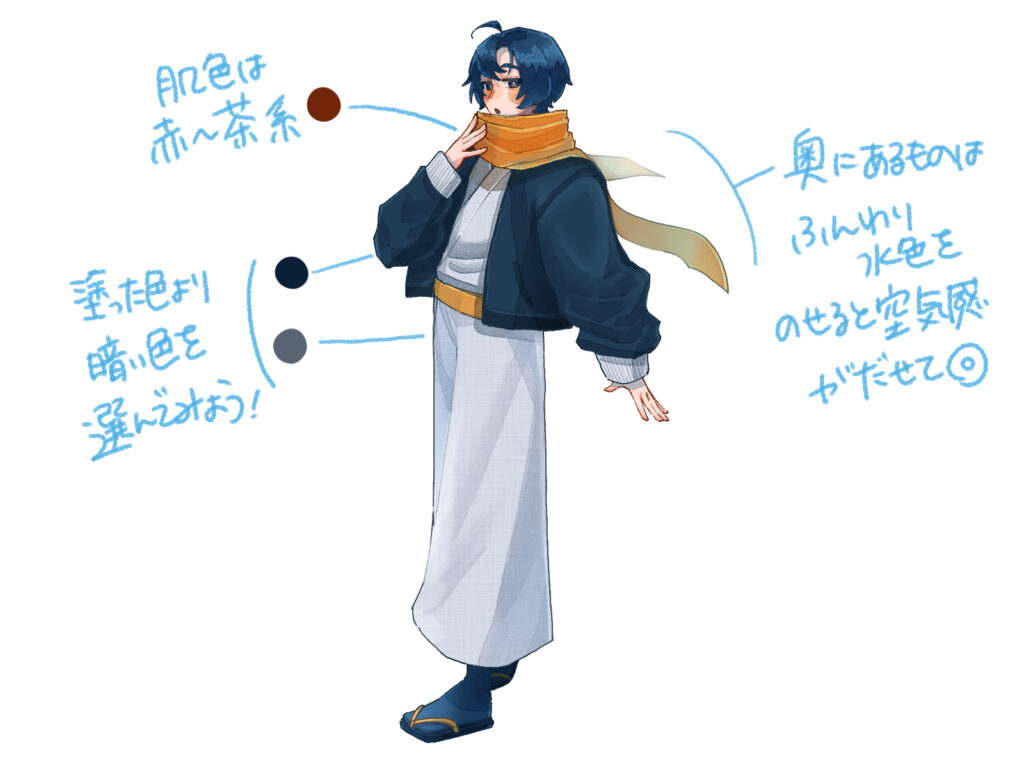 マフラーや腕などを、バランスを見て(あえて画面外に)切り取ることで空間が生まれ、奥行きも出てきます。キャンバスのサイズに合わせて、キャラが魅力的に見えるように切り取ってみましょう。