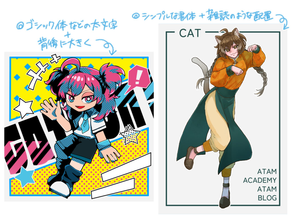 雑誌のデザインなどを参考に、文字の大きさや配置を工夫してみると、デザイン性が一気にアップします。
