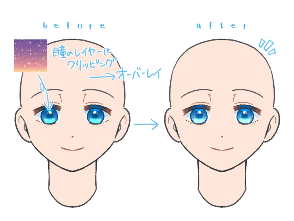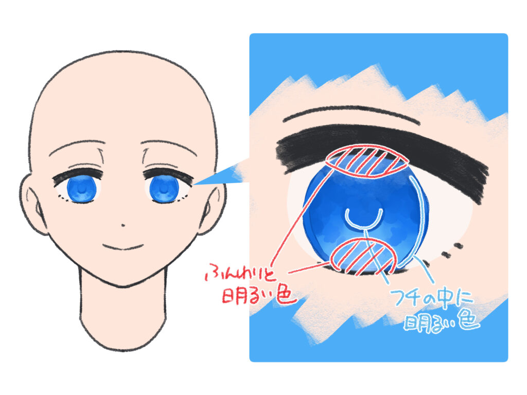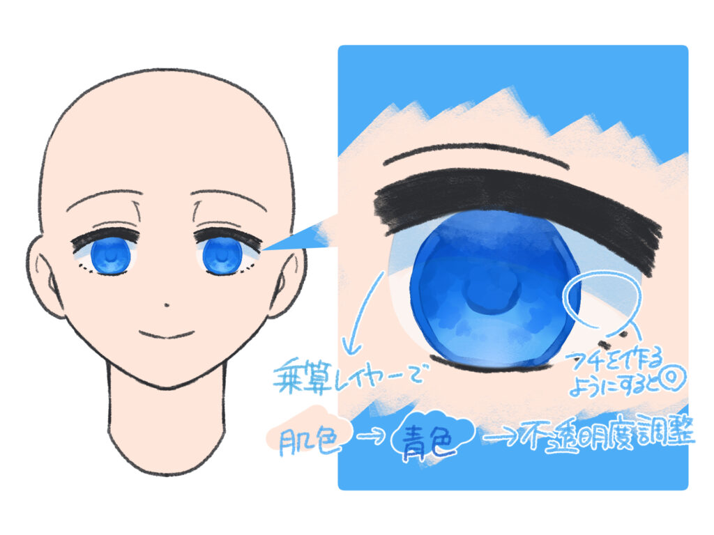 キラキラと輝く宝石のような瞳は、多くのイラストレーターに人気です。 詳しい塗り方の手順は、以下の記事で解説しています。