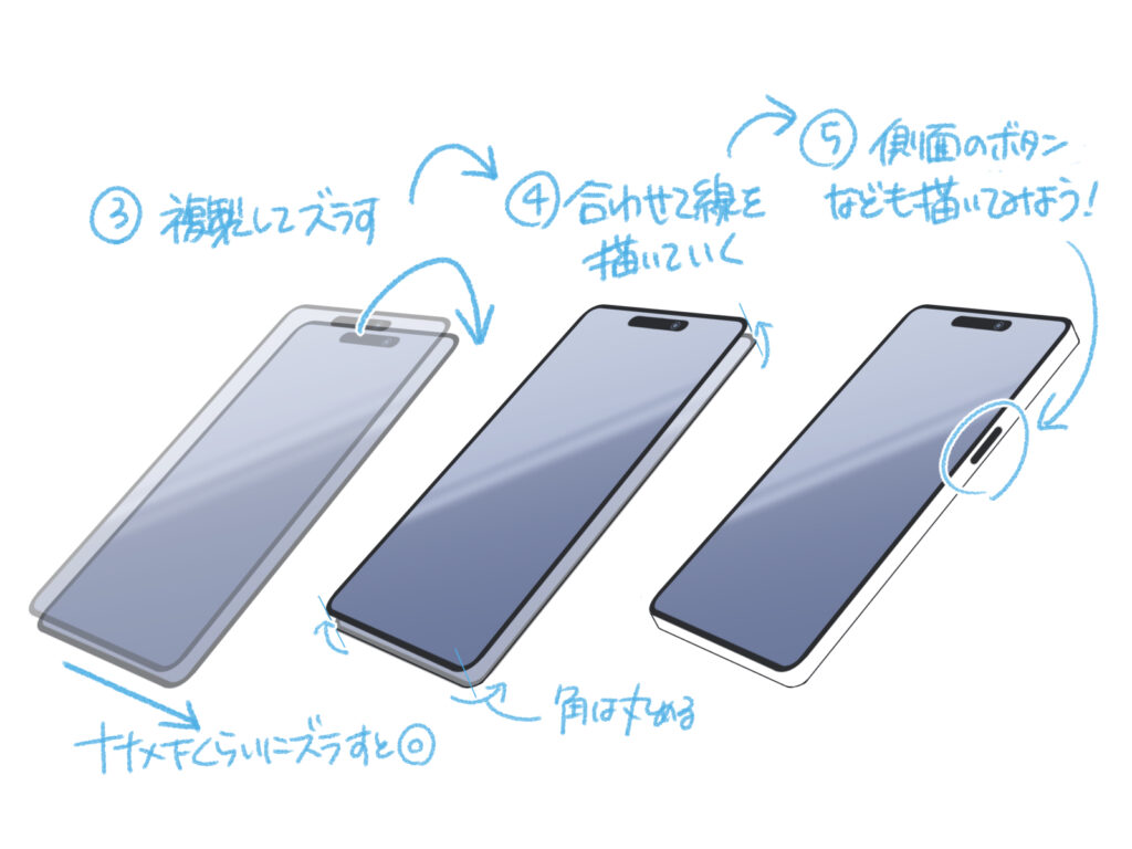 斜め向きのスマホの描き方