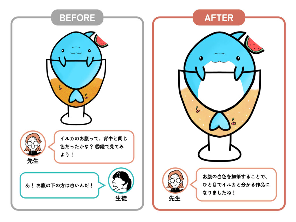 参考記事:【生徒作品の紹介】イルカが炭酸のグラスに入っているキャラのグッズ制作