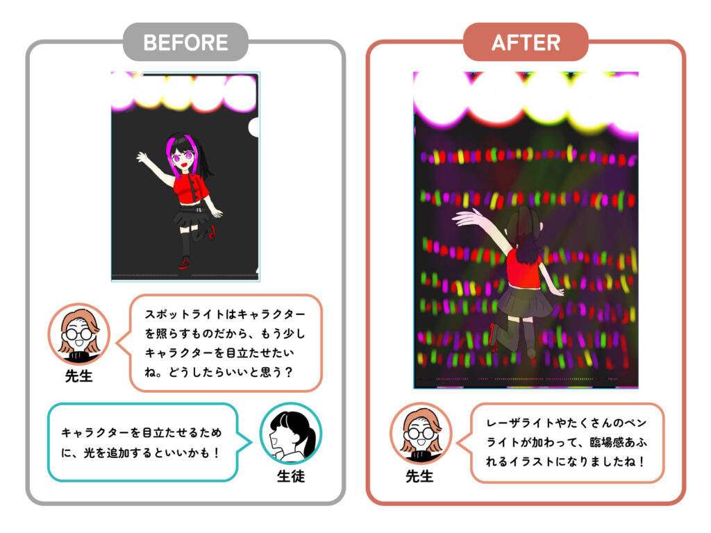参考記事:【生徒作品の紹介】スポットライトを浴びているアイドルのクリアファイル
