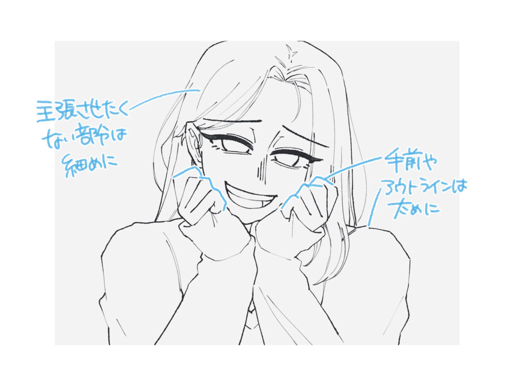 エモい絵の線画を描くときは、すべて同じ太さで描くのではなく、強弱をつけましょう。