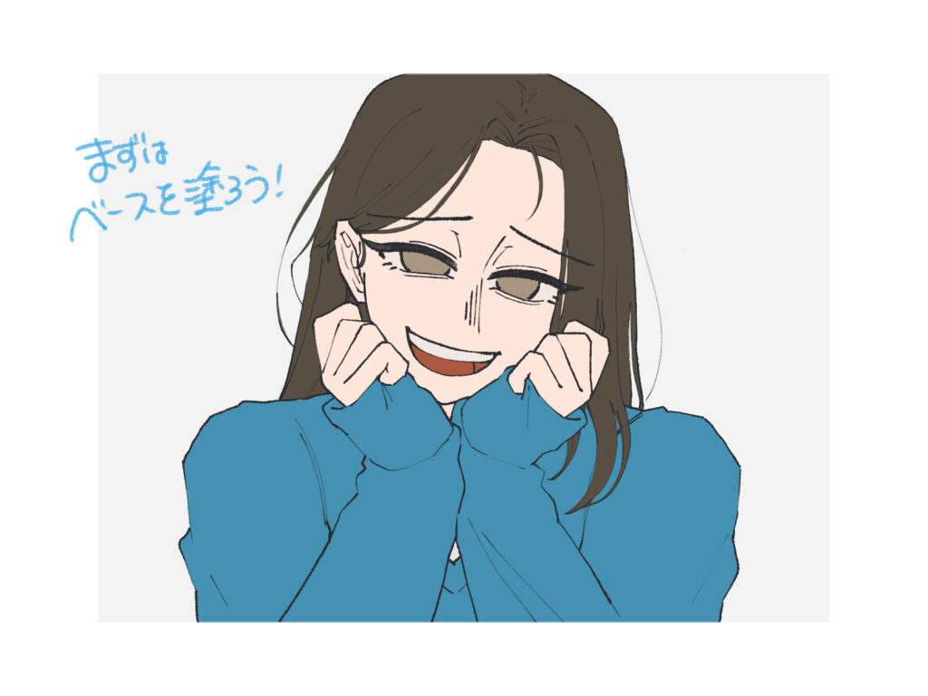 光源の位置を決め、明暗の差をはっきりさせます。背景も一緒に塗ると、光の方向がズレないのでおすすめです。