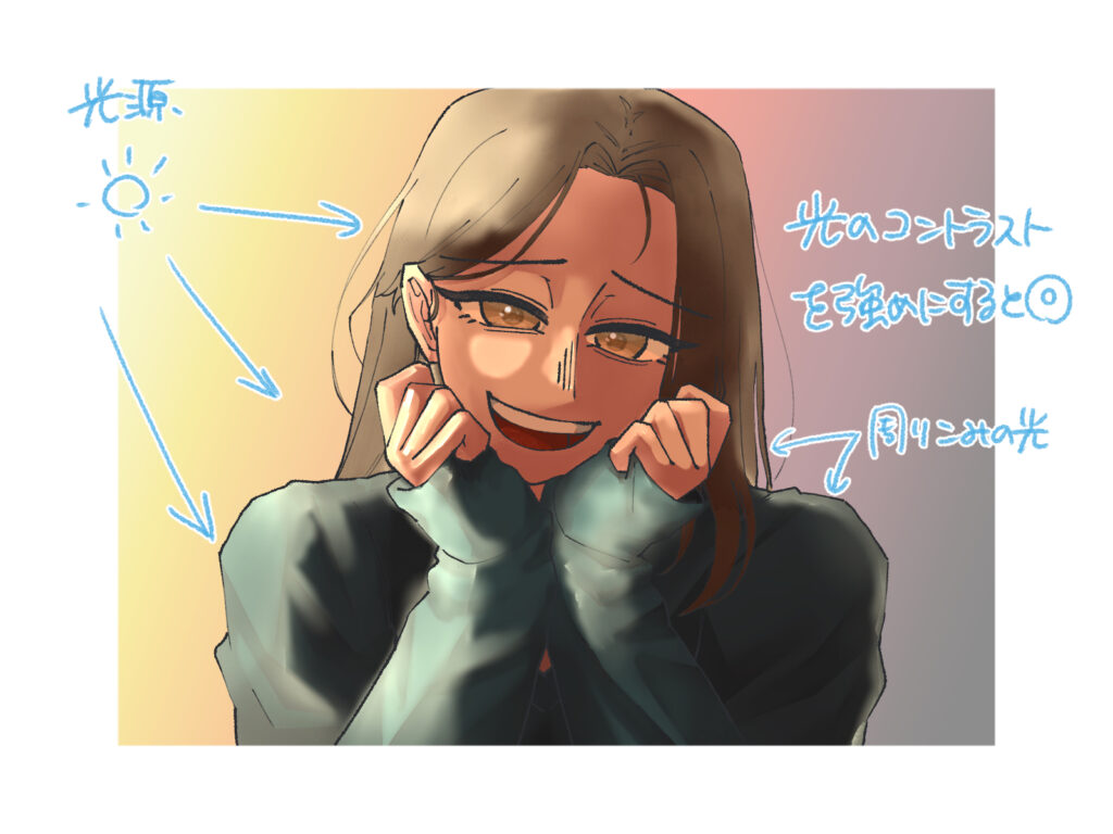 エモい絵の色を塗るときは、光の表現方法を工夫しましょう。