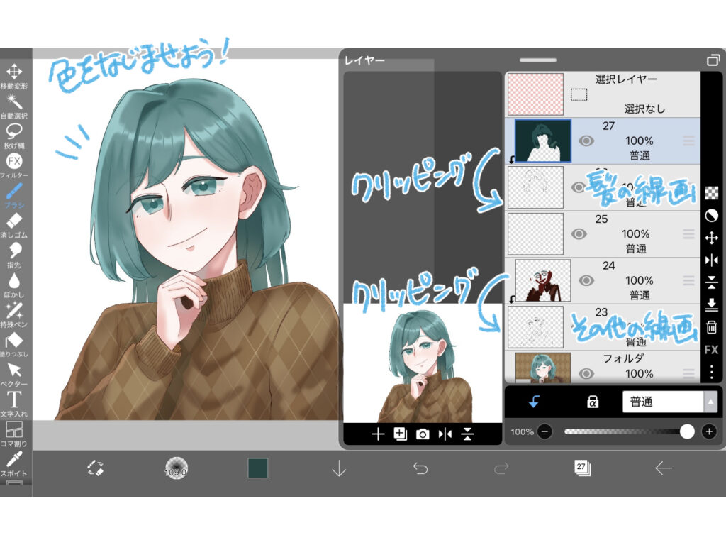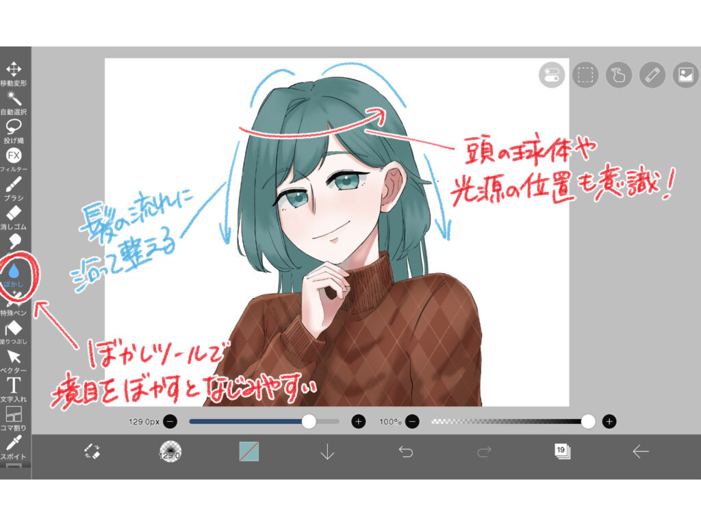 アイビスペイントを使った、基本的な髪の毛の塗り方を解説します。