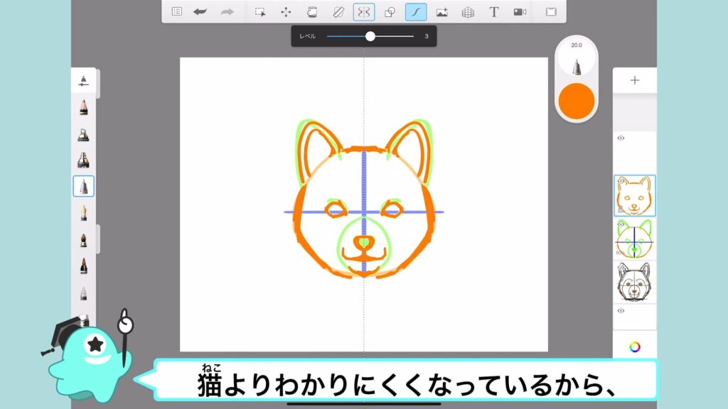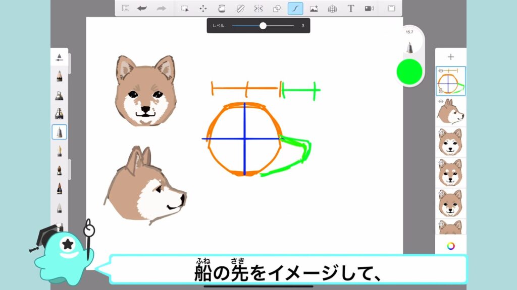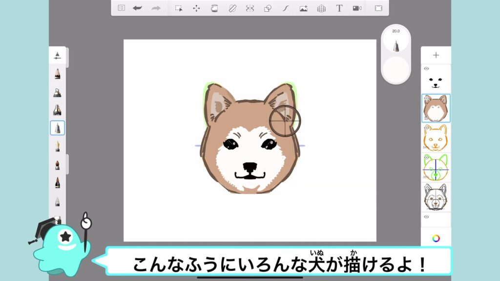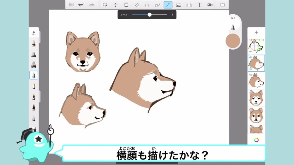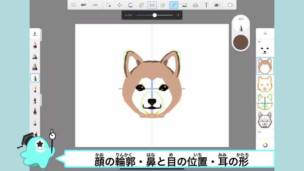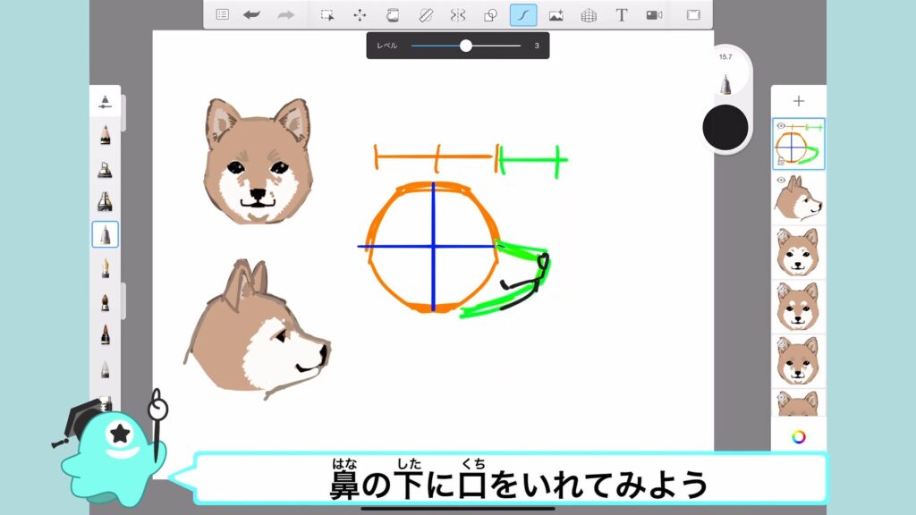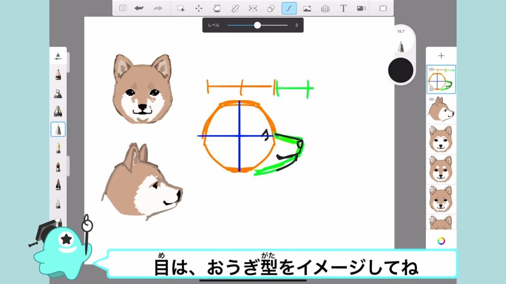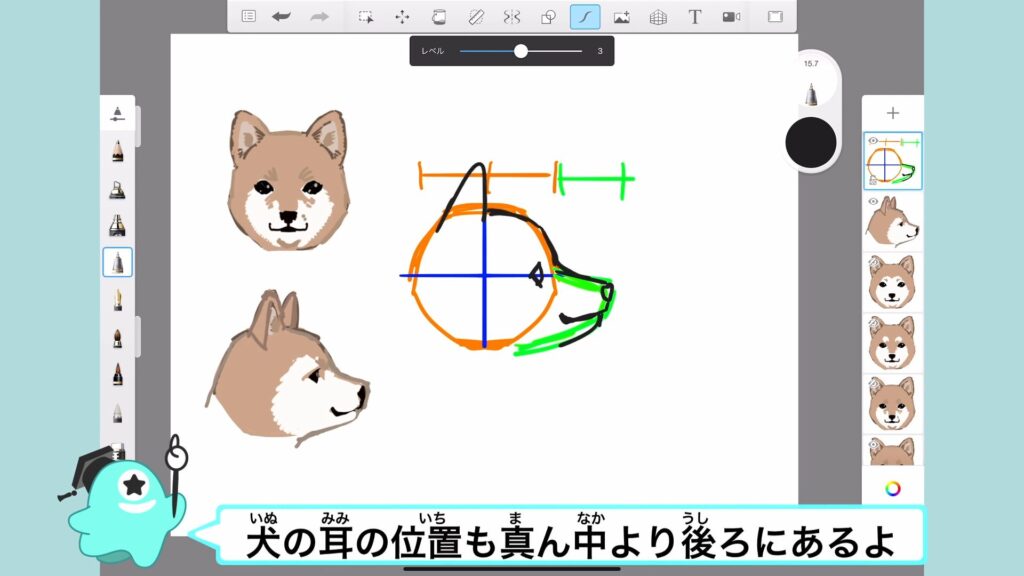 アタムアカデミーでは、犬の顔の描き方を学ぶことができます。