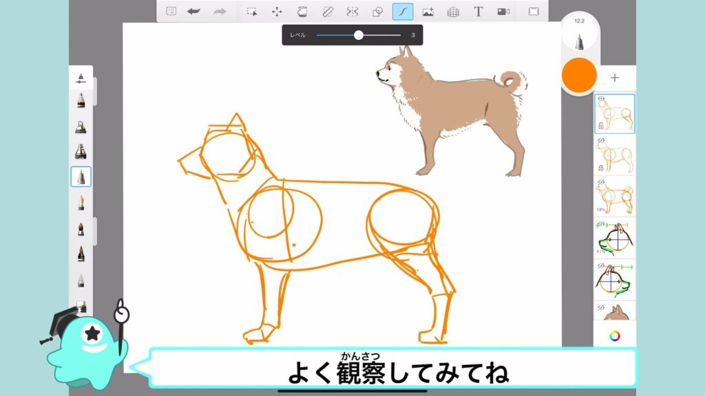 アタムアカデミーでは、可愛い柴犬の描き方を学ぶことができます。